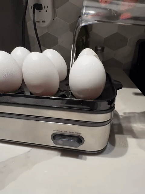 Load Up: Place up to 6 eggs in the cooker.