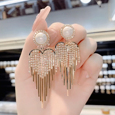 - 1Pair*Pearl full diamond tassel earrings