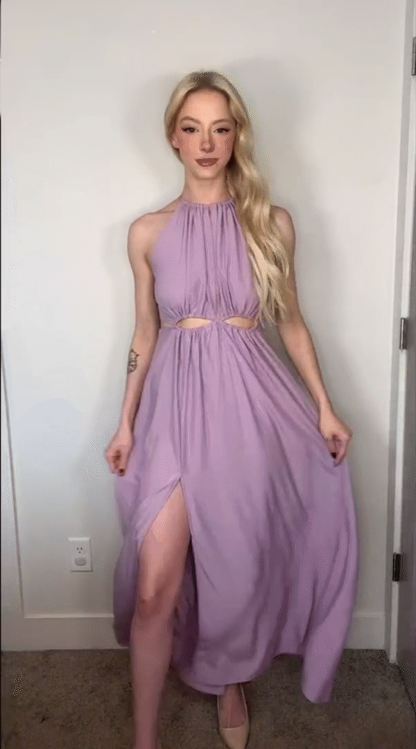 Its look is defined by the hollow out detail at the front and back, which makes the dress a really great eye-catcher. While the elasticated waistband brings the aline shape, skirt part with side hem slits also provide more freedom of movement.
